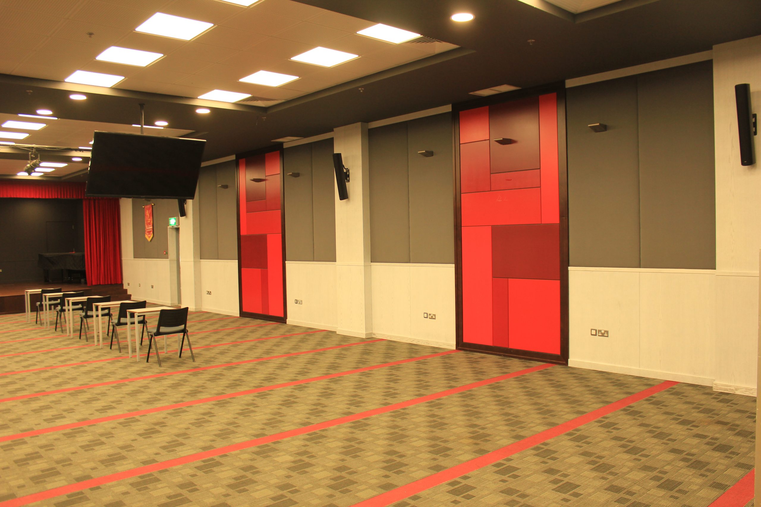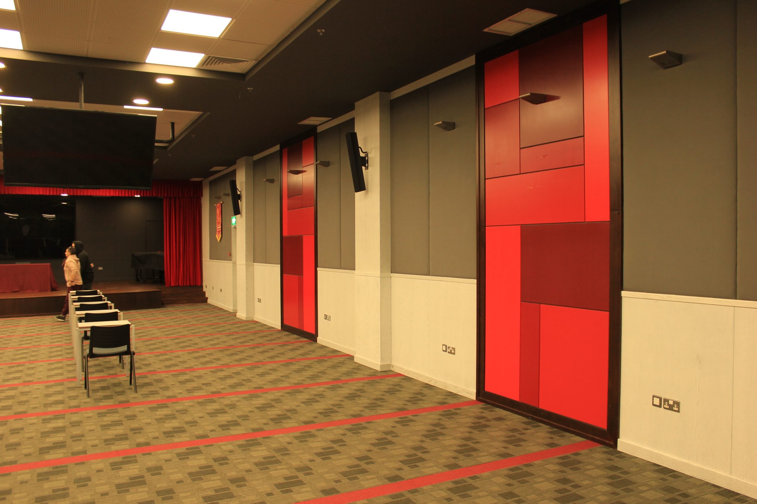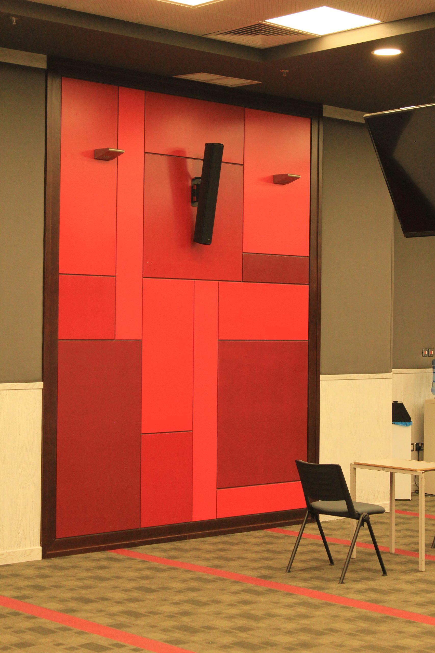 We produced and install wooden cladding for a theater inside The American University of Kuwait